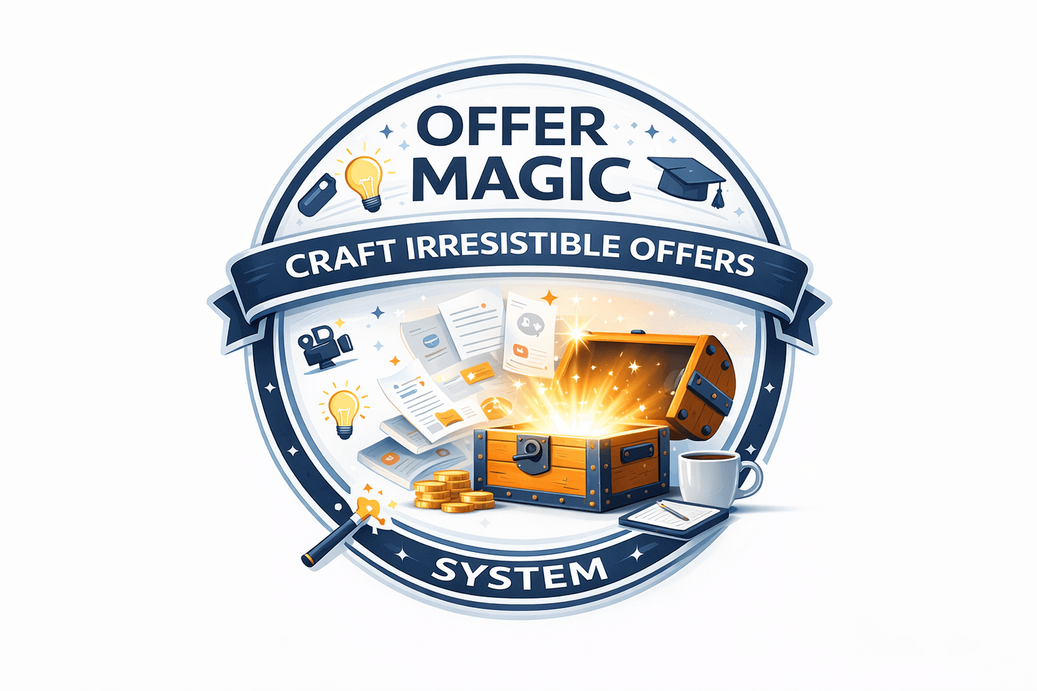 Offer Magic walks you through creating an irresistible offer from scratch. Everything you need to build an offer that converts is inside.